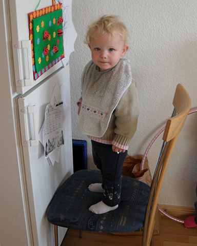 Den schuldbewussten Ausdruck hat sie nur, weil sie genau weiß, das sie nicht an die Marienkäfer soll. Den Stuhl hat sie sich selber organisiert :shock_tb: .