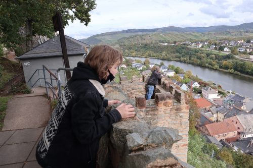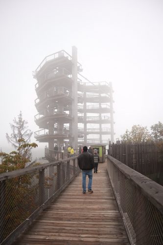 … haben wir uns heute morgen angeschaut. Der Baumwipfelpfad und die Aussichtsplattform waren gut zu erklimmen, da könnte man sogar mit Kinderwagen und co. hoch. Allerdings lag wirklich noch sehr viel Nebel über dem Land und trübte die Aussicht. Um so weiter konnten wir später von der Saarburg aus sehen. Die Kinder und ich haben mal wieder die Seilbahn runter genommen, Chris ist durch die Weinberge runter und rauf spaziert. Und jetzt spielen Chris und Lena ein wenig, die großen Kinder wollen noch spazieren gehen und den Sonnenuntergang bewundern. Essen dann viel später bei uns im Mobilheim.