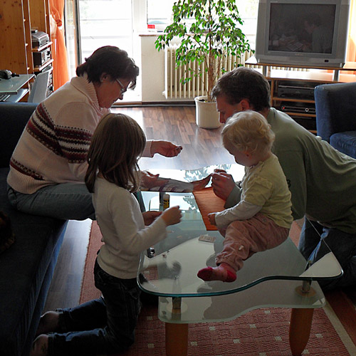 Um 4 Uhr heute Nacht begann für Chris schon der Tag, weil ich Lena überhört habe und er sie holen musste. Gekuschelt hat sie dann aber die nächsten 2 Stunden mit mir (ich liebe das :herz: ), bis um 6 Uhr der Wecker klingelte. Alle angezogen, Küche vorbereitet, schnell zum Bäcker und Schlachter und um kurz vor 7 Uhr durfte sie dann in die Küche: Kerzen auspusten, Geschenke auspacken und Frühstücken. Kurz nach 8 Uhr ging es dann zu Susanne, die auch schon mit Smarties, Geschenken und Kerzen zum auspusten wartete :herz: . Die beiden haben dann noch Muffins gebacken, während Chris und ich zu Hause Klarschiff gemacht haben. Halb 12 Uhr kam dann Oma und wir haben zusammen Lena wieder abgeholt. Gegessen, noch mehr Geschenke geöffnet, gespielt und was man halt sonst so an Geburtstagen macht. Valeska und Opa kamen auch noch und jetzt, wo wieder Ruhe herrscht, kommt die Müdigkeit. “Schöner Tag, das!” wie Popinga aus Janas und Lenas Lieblingsbilderbüchern sagen würde 😉 .