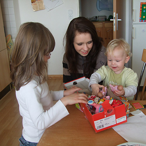 Morgen wird Lena auch zu Susanne gehen morgens, auch wenn Chris Urlaub hat. Die Tagesmütter aus ihrem Kurs haben verabredet, sich min. einmal im Monat zu treffen und dieses Treffen ist morgen früh. Für den Fall, das eine der Tagesmütter sich ein Bein bricht oder sonstiges, hätte jede Tagesmutter dann andere Tagesmütter die das Kind schon kennen und die sie der Mutter weitergeben könnten. Find ich total gut, die Idee.