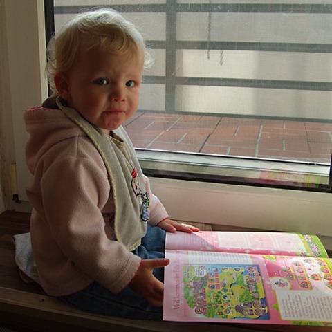 Wir im Wartezimmer (Jana soll Läuse haben, außer 3 “Nissen” haben aber weder ich noch die junge Ärztin was gefunden, ich behandel trotzdem). Frau mit kleinem Mädchen in schätzungsweise Lenas Alter kommt rein. Erstaunlicherweise genau so klein wie Lena (die ja recht klein für ihr Alter ist), sprachlich genau so weit ungefähr, motorisch noch ein bißl fitter. Von einem Spielzeug zum nächsten am hüpfen, jedes Mal am motzen wenn Lena sich eins ihrer abgelegten geschnappt hat. Lena schaute sich das ‘ne Zeitlang an, hörte sich die Kommentare der Mutter an (“Nein, Anne. Jetzt hat das Mädchen das, du bist da weggegangen”) und gab dann irgendwann trocken den Kommentar “Anne doof” ab. :shock_tb: