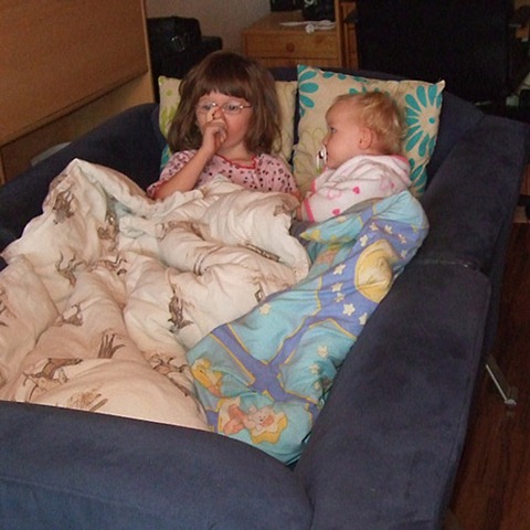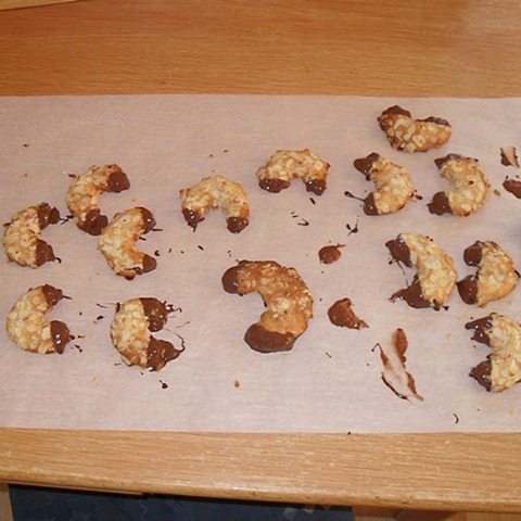 Und weil wir ja alle noch kränkeln, haben wir den Tag heute ruhig angehen lassen (bei dem Wetter ja auch keine große Alternative). Die Kinder durften einen Film sehen, Jana ein wenig DS spielen, ich hab in aller Seelenruhe ein paar Mini-Mandelhörnchen gebacken und die Wäsche erledigt und Chris hat stundenlang mit Jana in ihrem Zimmer rumgeorgelt, aufgeräumt und dann mit Opa noch das Regal über Janas Bett wieder fest gemacht.