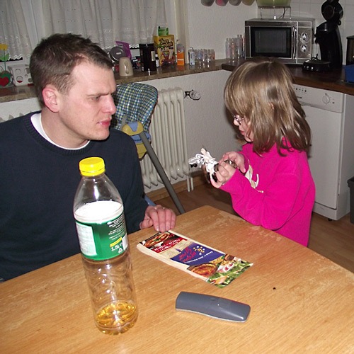 Nach ein wenig Trödelei heute morgen sind wir alle um kurz nach 11 Uhr aufgebrochen. Chris mit Lena zum Friseur, Jana und ich in die Stadt. Sind erst bei Schwesterchen vorbei, dann bei Tedi rein (Batterien und Erdbeerpflänzchen) und gegenüber zu Photo Porst (Tasche für meine Cam). Ab in die Nordseepassage Würstchen essen, zu Rossmann (Katzenfutter und Badesalz) und zu H&M (Shirt für Jana). Bei H&M wollte Jana MIR andauernd die unmöglichsten Klamotten andrehen (von wem hat das Kind die Vorliebe für Leopardenlook???!), für sich selbst dann aber das gute alte Rosa haben. Wo wir schon mal so schön oben auf der Galerie waren, sind wir noch fix in Richtung Toiletten und im Tierladen rein (hach, 2 Meeris hätten wir am liebsten gleich eingepackt und den einen durchgeknallten Hamster für mich). Weiter ging es zurück in die Marktstraße. Bei Ernsting’s geschnüstert, 2 Apotheken wegen Lenas Lotion abgeklappert (muss bestellt werden, das bekomm ich dann im Internet aber billiger), bei Dannmann hat Jana ihr Geld für eine Schleichfigur auf den Kopf gehauen, bei Woolworth und Nanu Nana haben wir nur so geschaut. Und weil wir so langsam wieder Hunger bekamen, haben wir uns eine Pommes geteilt und ich hab Jana bei Ernsting’s ihre gewünschte Armbanduhr gekauft. Und weil es bis dahin so schön harmonisch abgelaufen ist, sind wir noch im Kino gelandet. Rapunzel geschaut, dank Menü hat Jana jetzt auch ihr Uno-Spiel (ich bezahl doch nicht 5 Euro für die Reiseversion, wenn ich das im Kino noch mit Cola und Popcorn dazu bekomme *g*) und nach dem Film mit einer sichtlich müden Jana mit dem Bus wieder nach Hause.