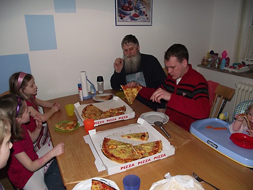 Zuhause erwarteten mich dann auch schon alle, inkl. Werner mit Anne und M-Rie (wie Lena immer sagt, eigentlich natürlich Marie). Die Männer Werners Netbook am Wickel, die Kinder am spielen und ich zwischendrin am wuseln. Und kurz vor 17 Uhr kam Chris dann auf die tolle Idee, Pizza für alle und Cheeseburger für mich zu bestellen, so haben wir auch alle noch zusammen gegessen und dann war auch schon wieder Feierabend.