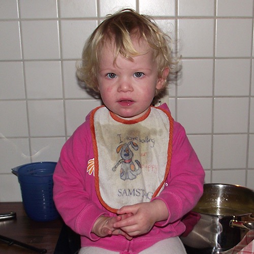 … die Große. Heute Hausaufgabe: ein paar Sätze 5x lesen. “Nino isst Rosinen”, “Es ist … “, immer wieder auch “ich” und “nicht”. Wir haben das, dank Besuch am Nachmittag von Anne, erst heute Abend als Gute-Nacht-Geschichte erledigt. Sie tut sich ein wenig schwer mit den Sätzen. “Es” wird “eees” ausgesprochen, das “ich” und “nicht” klingt wie bei einem Russen, hart ausgesprochen. Das “ist” ist eher ein “ihssssd”. “Nun” eher “Nuuuuuuhn”. Überbetont halt. Wir alberten rum und ich meinte zu ihr das ich nicht verstehe, wieso sie gerade die kurzen Worte, die man ja praktisch auswendig lernen kann so schlecht lesen kann. Habe dann ein paar Seiten geblättert um Abwechslung zu bekommen und Sätze weiter hinten aufgeschlagen. “Das Dach ist rot”, “Der Regenbogen ist” (bunt konnte sie nicht lesen), “Die Maus hat … Augen” (braune machte Schwierigkeiten), “Der Esel mag Rosinen”. Alles anstandslos, ohne auch nur zu überlegen, gelesen.