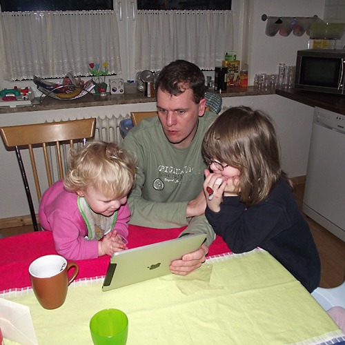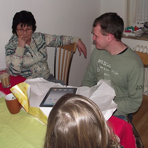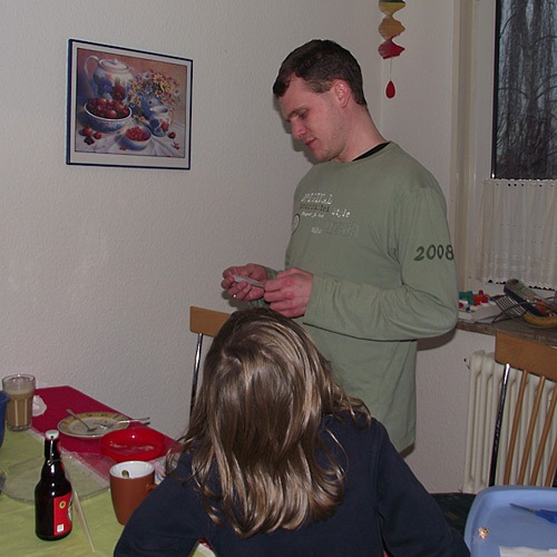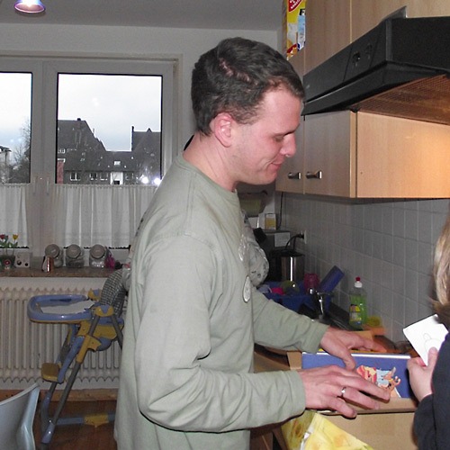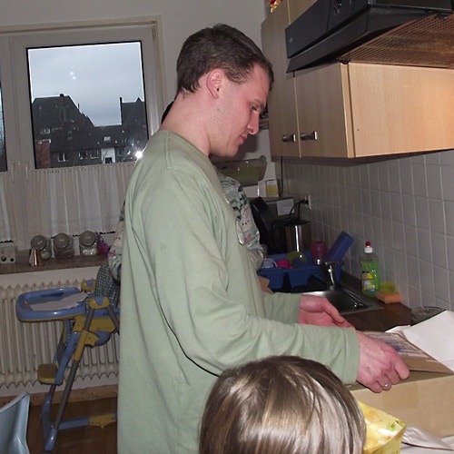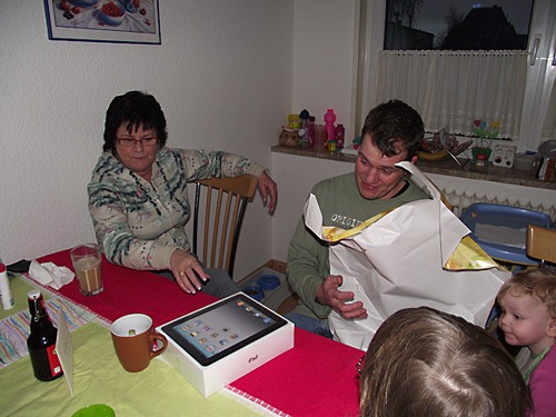 … ist der Geburtstag. Heute morgen hieß es für mich schon um 6 Uhr aufstehen. Frühstück vorbereitet, Kinder und mich angezogen und dann singend Papa “geweckt”. Mittags nach der Arbeit erwartete mich zu Hause nicht nur Jana, Chris war auch schon da. Schnell geputzt und Kuchen vorbereitet. Opa kam, Oma ließ noch auf sich warten …