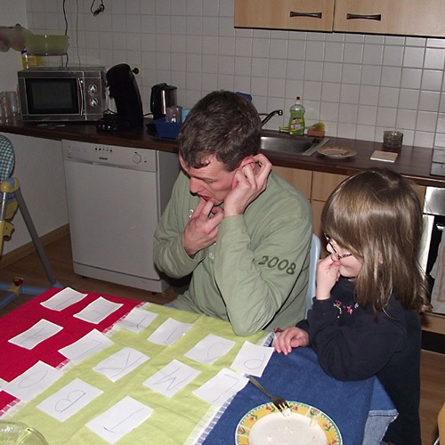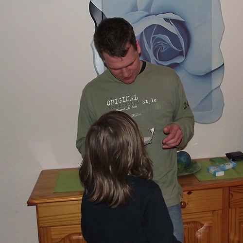 Jetzt durfte er grübeln, um das Wort “Playmobilkiste” zusammen zu basteln, wo Chris schließlich sein Geschenk abholen konnte *g*.