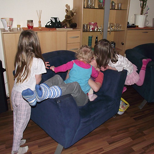 … hatten wir heute hier. Kaum kam ich bei Sanne rein, um die Zwerge abzuholen, wurde ich schon bestürmt, ob wir heute Zeit hätten. Und so tobten Anne + Marie heute Nachmittag mit Lena + Jana durch die Wohnung.