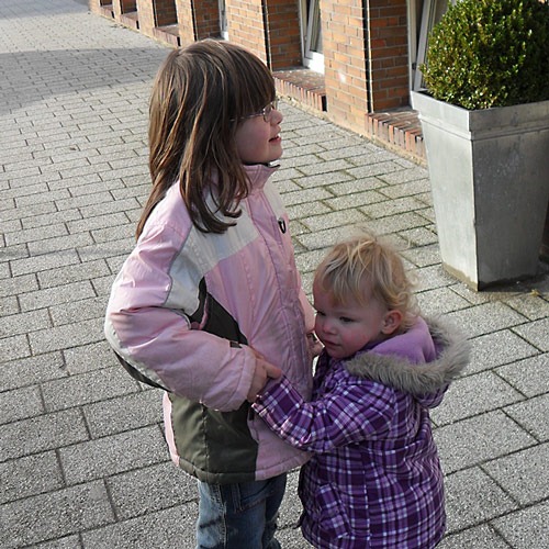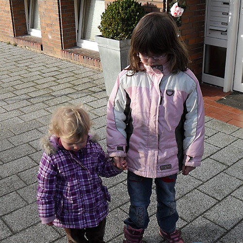 Dann Lena abgeholt, die mal wieder eigentlich nicht mit wollte. Schnell nach Hause und fast direkt wieder los in Richtung Schule. Jana wollte laufen, Lena wollte laufen und hat sich prompt so richtig hingelegt und den Kopf am Pflaster angehauen.