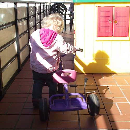 … Muttern den Flur rauf und runter latscht mit einer Plastiknachzieheisenbahn an der linken Hand und imaginären Meerschweinchen in der rechten Hand, sich mit Bibi ansprechen lässt und den Zug (Amadeus) mit “Hü” antreibt, dann: hat sie eindeutig keine Hausarbeit mehr, um dem fantasievollen kleinen Monster ausweichen zu können.