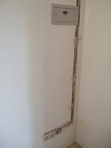 Der Sicherungskasten hinter der Wohnungstür, neben der Telefondose waren noch nicht mal Stromdosen.