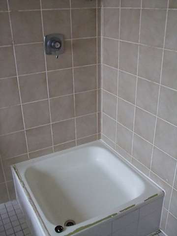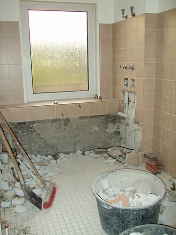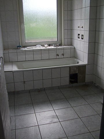 Die Duschwanne sah schick aus, gelle? Jetzt ist sie weg, dafür haben wir Strom- und Wasseranschluss für eine Waschmaschine (ne, ich mag nicht 2 Stockwerke in die Waschküche runterdackeln).