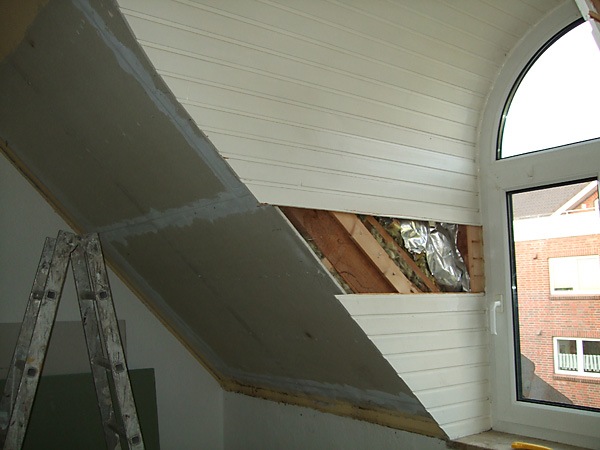 Janas Zimmer, noch mit schiefem Boden und dieser schicken Holzverschalung