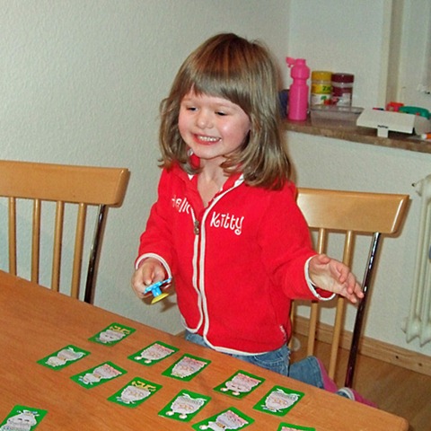 Heute morgen – noch vom Scharlach verschont – haben wir uns auf den Weg zu Ikea gemacht. Für Nico sein Billy-Regal mitgenommen, für Rainer seine Matte (gehört unter den Schreibtischstuhl) und für uns 2 Hasis, Kerzen, Plastikteller und –besteck für Kinder, eine Nachtlampe für Lena, Stifte, Aufbewahrungsbeutel für Spielzeug und 2 Latte-Gläser. Irgendwann sind wir trotz der Menschenmassen über Valeska und Olaf gestolpert, da deren Auto dann aber schon voll war, haben wir Billy doch eben bei ihnen vorbei gefahren und zum dank *hüstel* jede Menge Spielzeug mitgenommen, das von Valeska aussortiert wurde :shock_tb: Im Spielzimmer ist ja auch noch viel zu viel Boden und Wand frei *seufz*